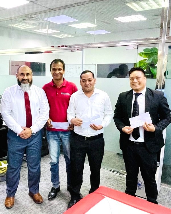 PROZTEC extends its heartfelt appreciation for the exceptional contributions of Mr. Imran Nabi Hamayun (Head of Sales and Technology), Mr. Mohammad Ali (Admin Officer), Ms. Nica Garcia Flores (Junior Sales Coordinator), Mr. Roshan Tandukar (Talent Pool Coordinator), Mr. Afroj Sekh (Office Assistant) and Mr. Sanjeev Kumar Yadav (Captain Driver) to the success of the Made in Qatar exhibit held from November 29 to December 2, 2023. Your dedication, positive attitude and hard work have significantly enriched our team and played a pivotal role in the overall achievement of the event. We express our gratitude for your outstanding efforts and continued commitment to excellence.