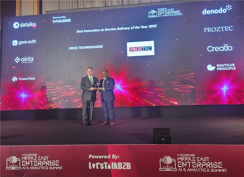 We are thrilled to announce that PROZTEC has been honored with the “Best Innovation in Service Delivery of the Year 2025” award at the 11th Middle East Enterprise AI & Analytics Summit.